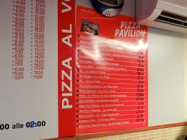 PIZZA PAVILION took place at the local pizzeria ‘PIZZA AL VOLO’ in Venice for the duration of the Venice Biennale #56 in 2015. 19 pizzas composed by 19 international artists could be purchased from a special PIZZA PAVILION menu and were realized by the pizzeria bakers and served on-site.